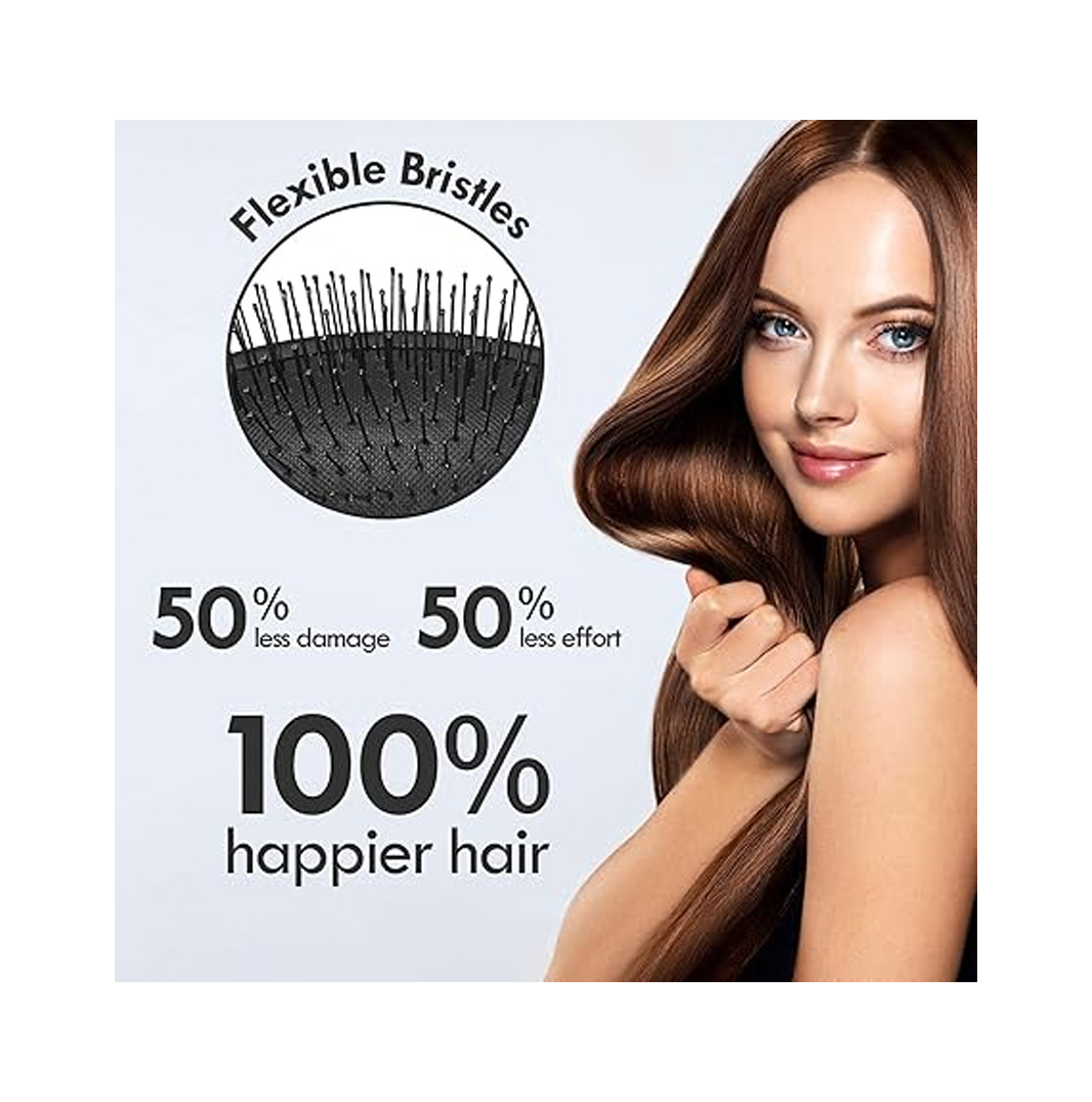 • Gentle on Hair & Scalp – The air-cushioned design provides a soft, flexible surface that adapts to your scalp’s shape, offering gentle protection during brushing. Paired with ultra-soft bristles featuring rounded tips, this brush massages your scalp, prevents irritation, and minimizes split ends and breakage. Enjoy a smooth, pain-free brushing experience that leaves your hair healthier, shinier, and free from damage.