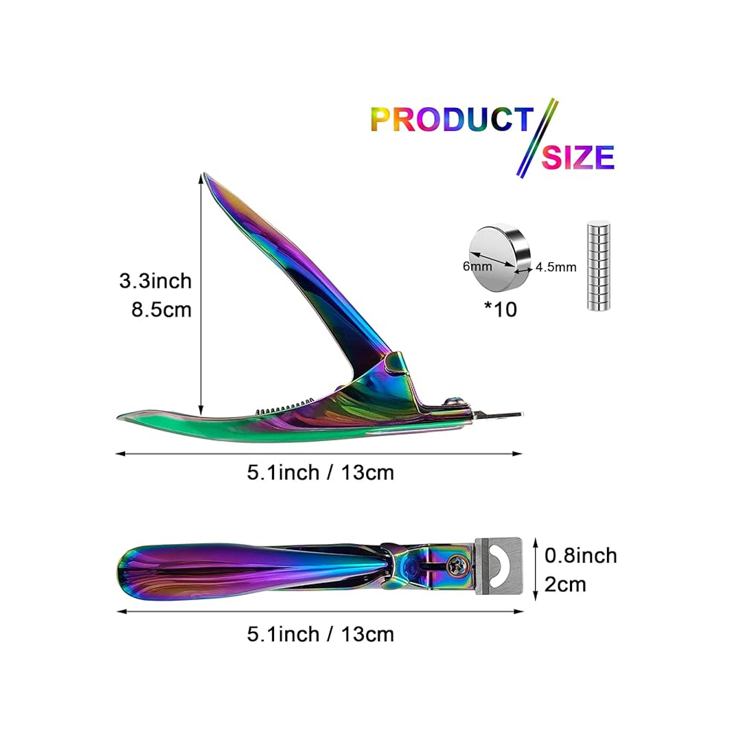 Acrylic Nail Cutter with Magnet Sizer & Length Measurement,Adjustable Stainless Nail Trimmer for Salon Home Nail Art, Professional Nail Clippers for Precise Manicures (Rainbow) ($ 4.99)