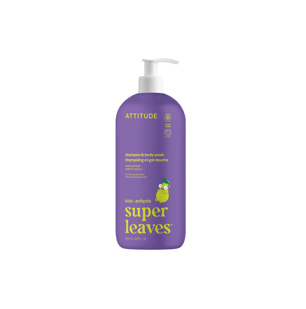 ATTITUDE Shampoo and Body Wash for Kids, EWG Verified Hair and Body Cleanser, Dermatologically Tested Soap, Plant and Mineral Based Bath Products, Vegan, Vanilla and Pear, 32 Fl Oz ( $ 16.29)