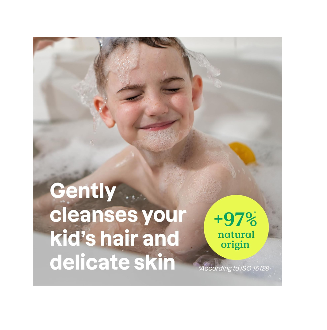 • NATURALLY DERIVED & GENTLE FORMULA: Formulated with 97% natural-origin ingredients¹, this kids body wash and shampoo is made without silicones or SLES, offering a cleaner, more gentle experience for delicate skin.