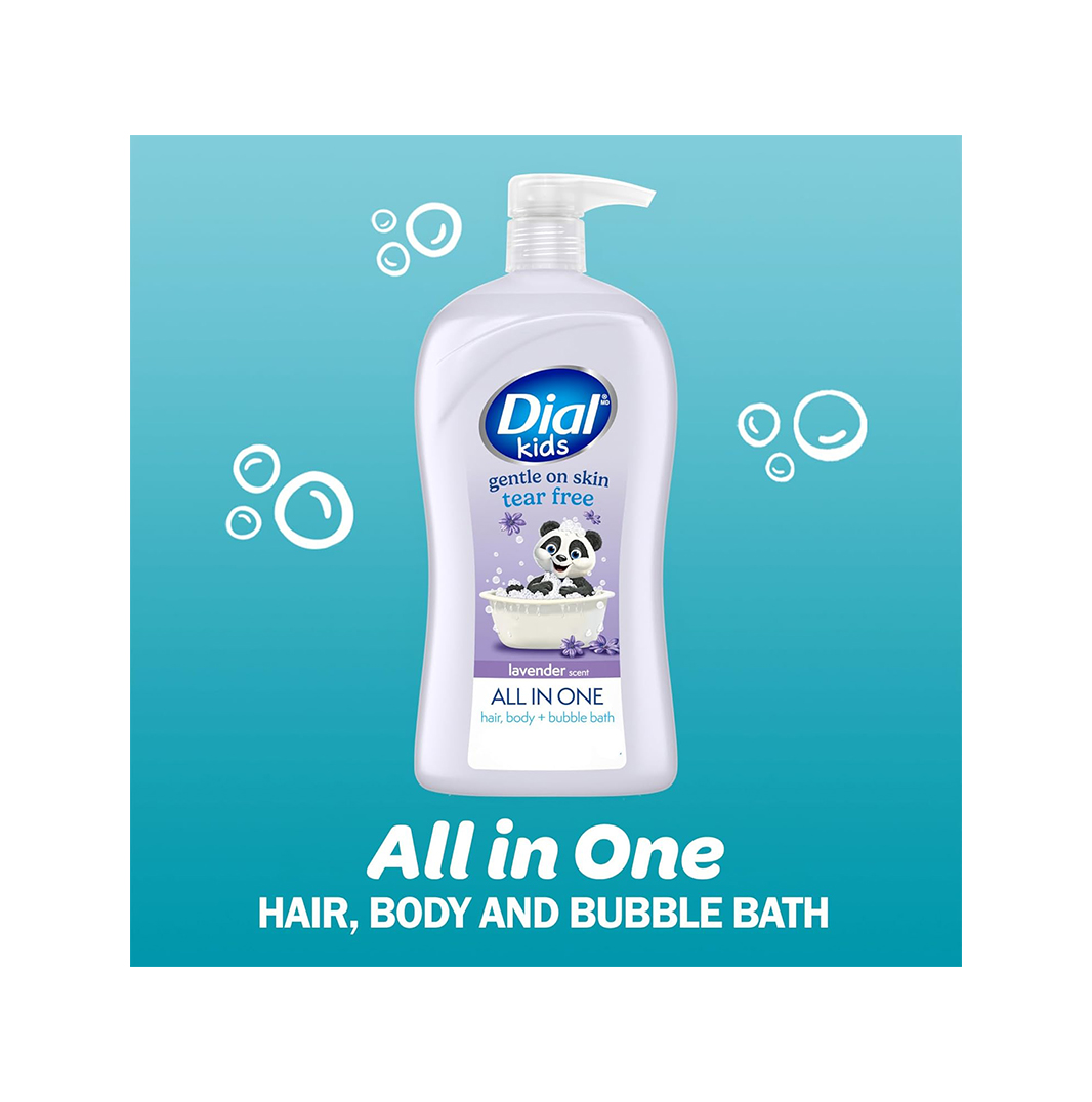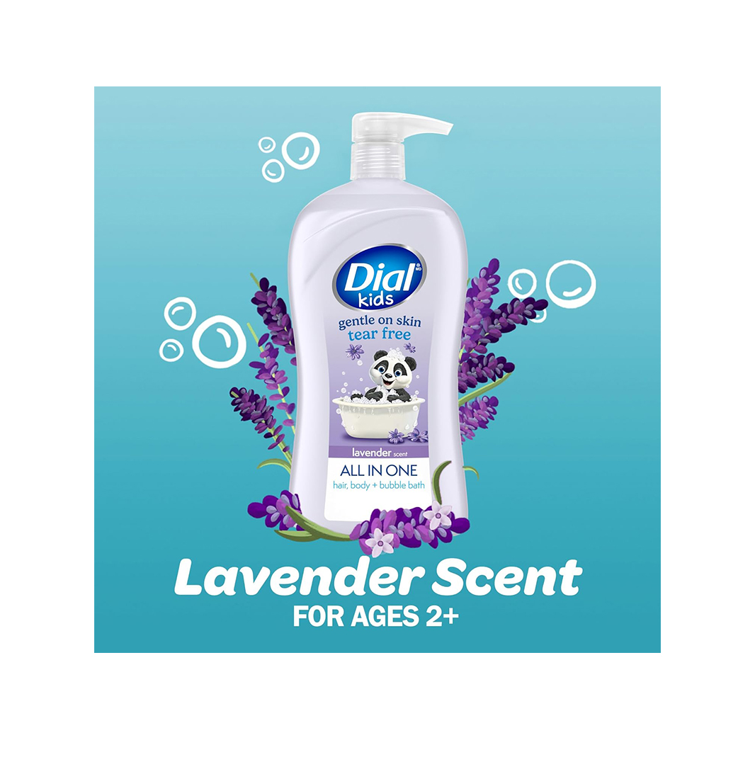 Dial Kids All-in-1 Body + Hair + Bubble Bath, Lavender Scent, 32 Fl Oz, Hypoallergenic Body Wash & Shampoo, No Tears Formula for Kids 2+ Years, No Parabens & Silicones ($ 7.47)