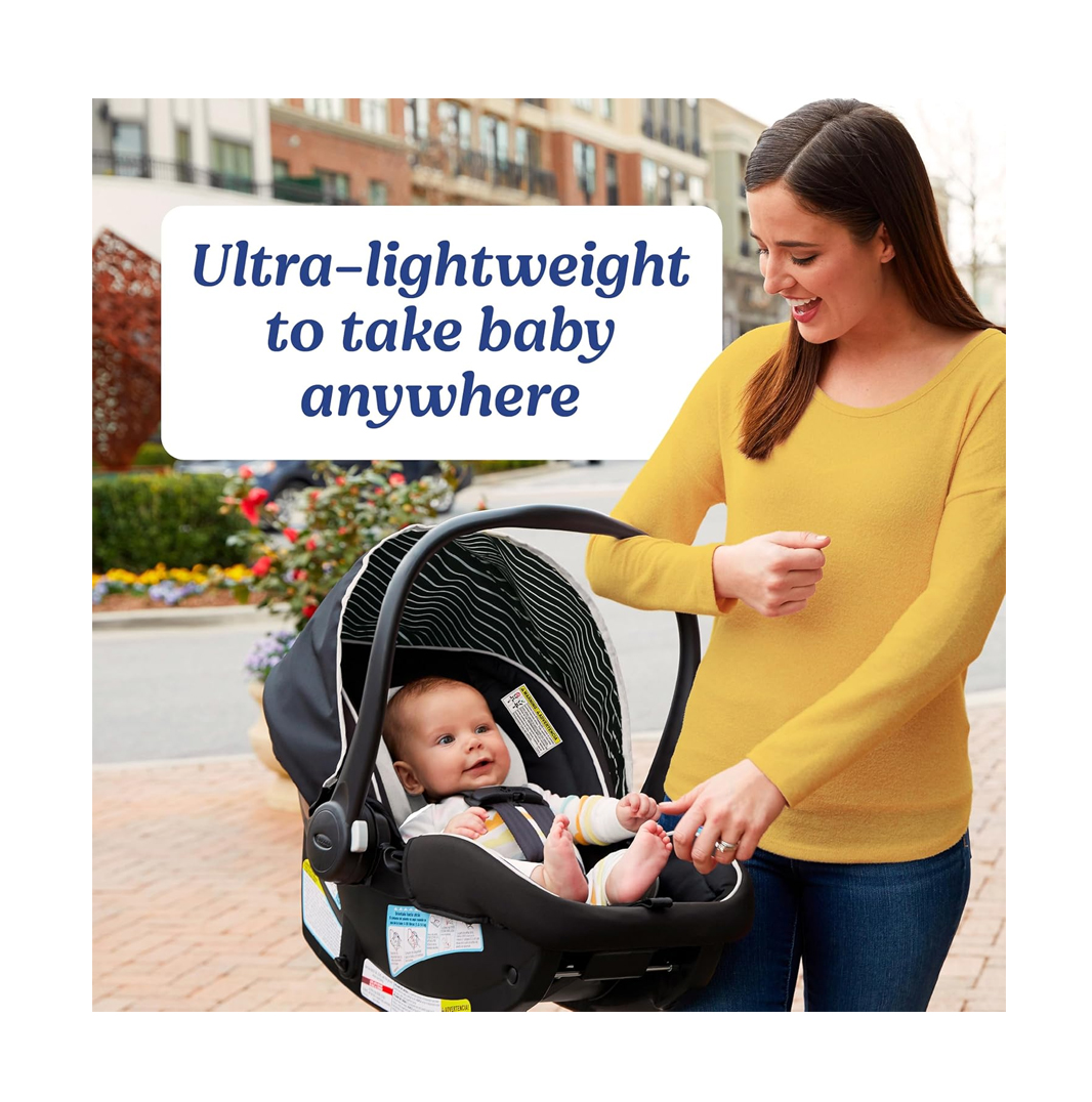 Lightweight infant car seat weighs only 7.2 lb, making it easy to carry baby from car to stroller