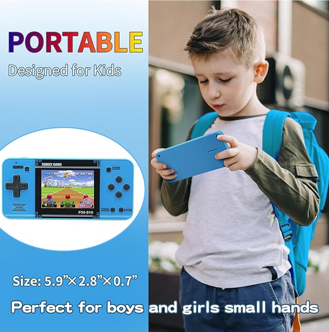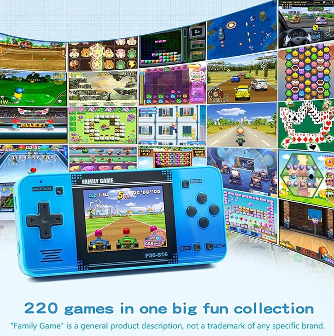 Handheld Game for Kids -Preloaded 220 Retro Video Games, Portable Gaming Player with Rechargeable Battery 3.0″ LCD Screen, Mini Arcade Electronic Toy Gifts for Boys Girls (Blue)