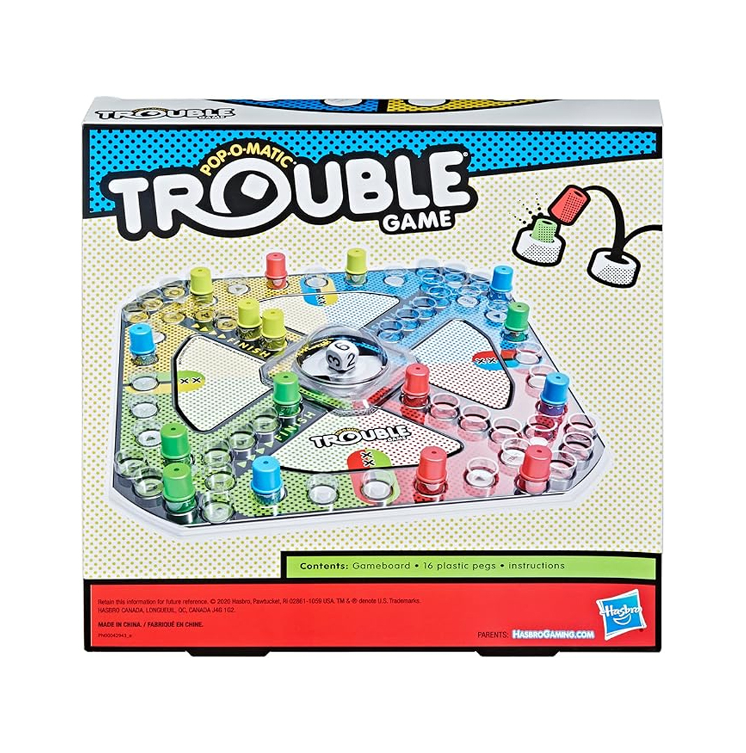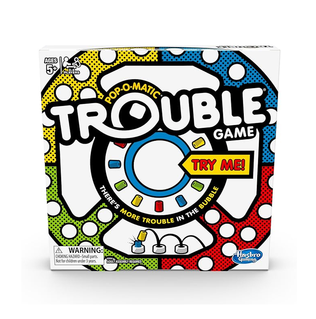 Hasbro Gaming Trouble Kids Board Game, Pop-o-Matic Trouble Game, Kids Games for 2-4 Players, Family Board Games for Kids, Kids Gifts, Ages 5 and Up, Packaging May Vary ($8.99)