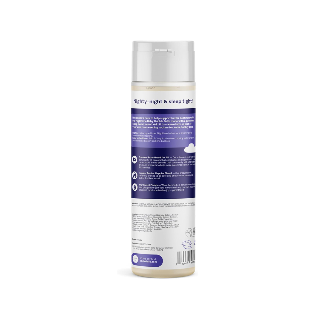 Hello Bello Sleep Sweet Scented Baby Bubble Bath is Dermatologist Tested, Kind to Skin, Not Tested on Animals (Leaping Bunny Certified), USDA Biobased 94% and designed with babies, budgets, and the planet in mind