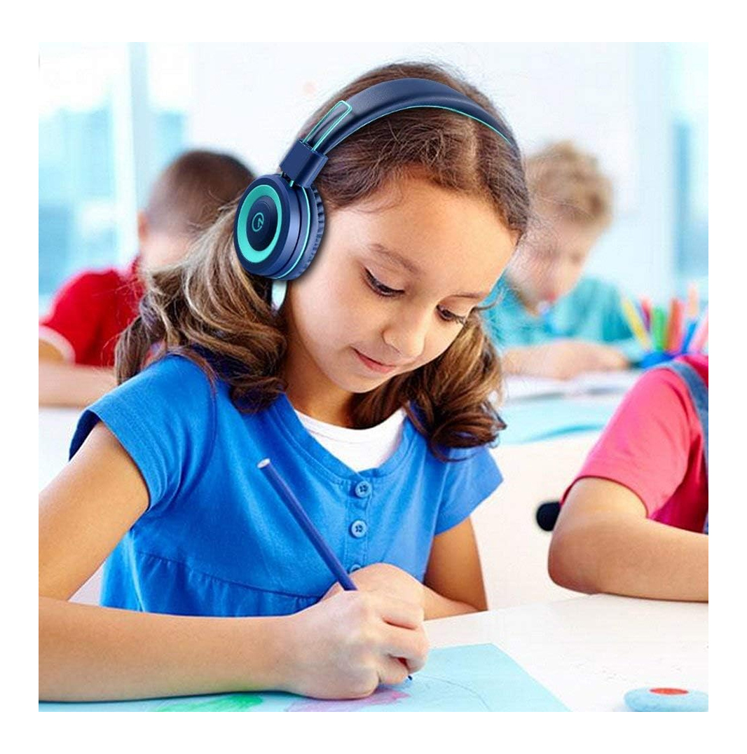 On-ear headphones has padded soft cushions with a soft touch finish. Adjustable headband for a perfect fit, and a lightweight design for kids age 3 and up. Foldable design for a more compact and easy storage. The cord is a 5 feet long nylon braided cable. Designed for kids, girls, boys, children, toddlers, home/online school, training.