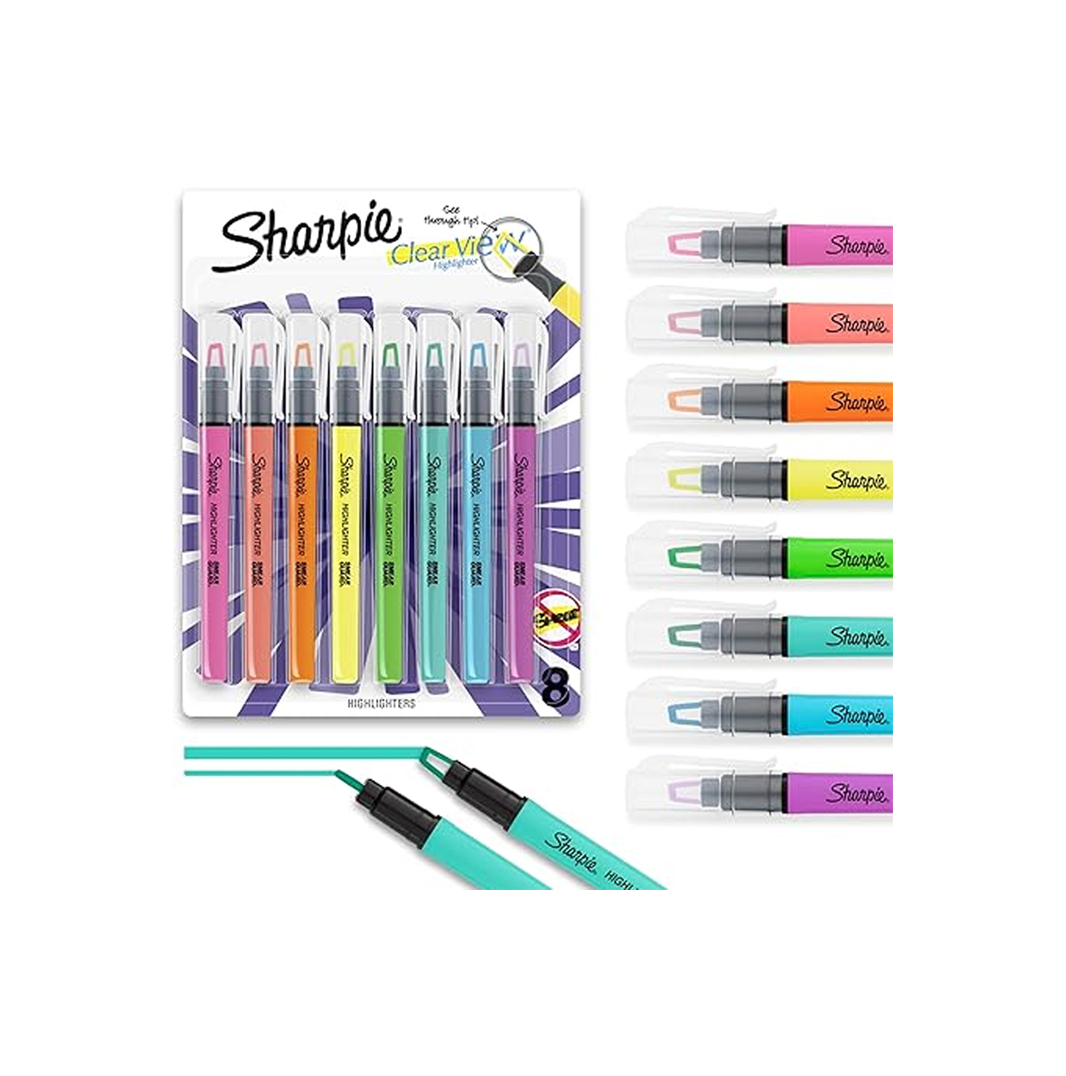 Sharpie Clear View Highlighter Sticks, Chisel Tip, Assorted Fluorescent, 8 Count – School, Home, and Office Use, Teacher Supplies ($13.94)